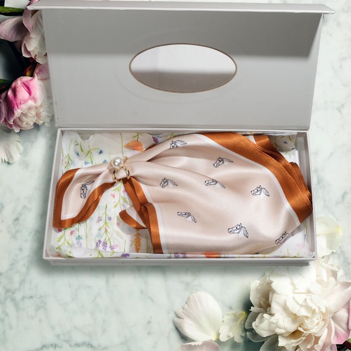 100% Mulberry Silk Scarf Versatile Double-sided Long Scarf Horse Head Design