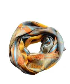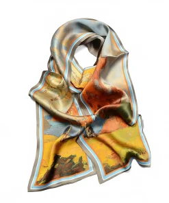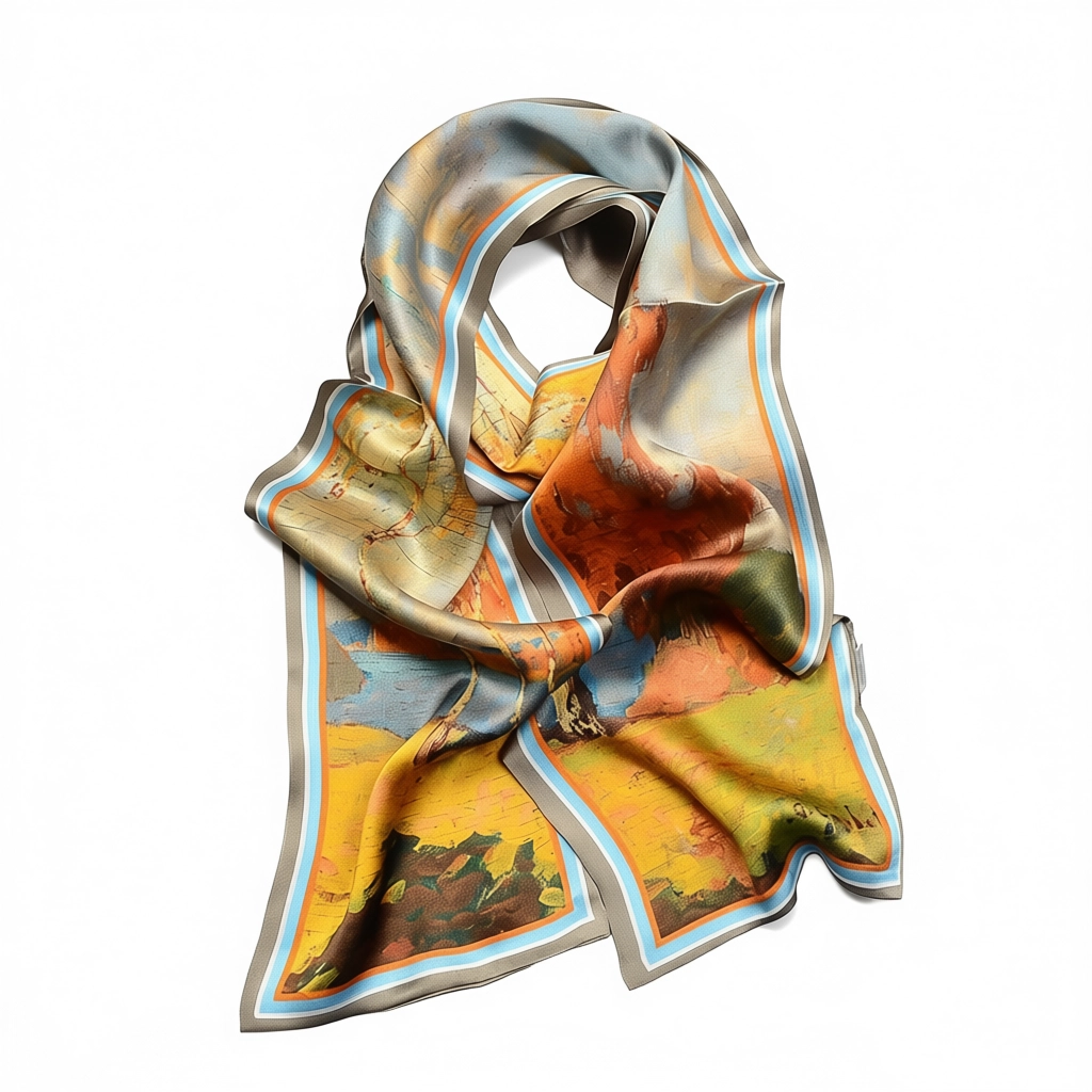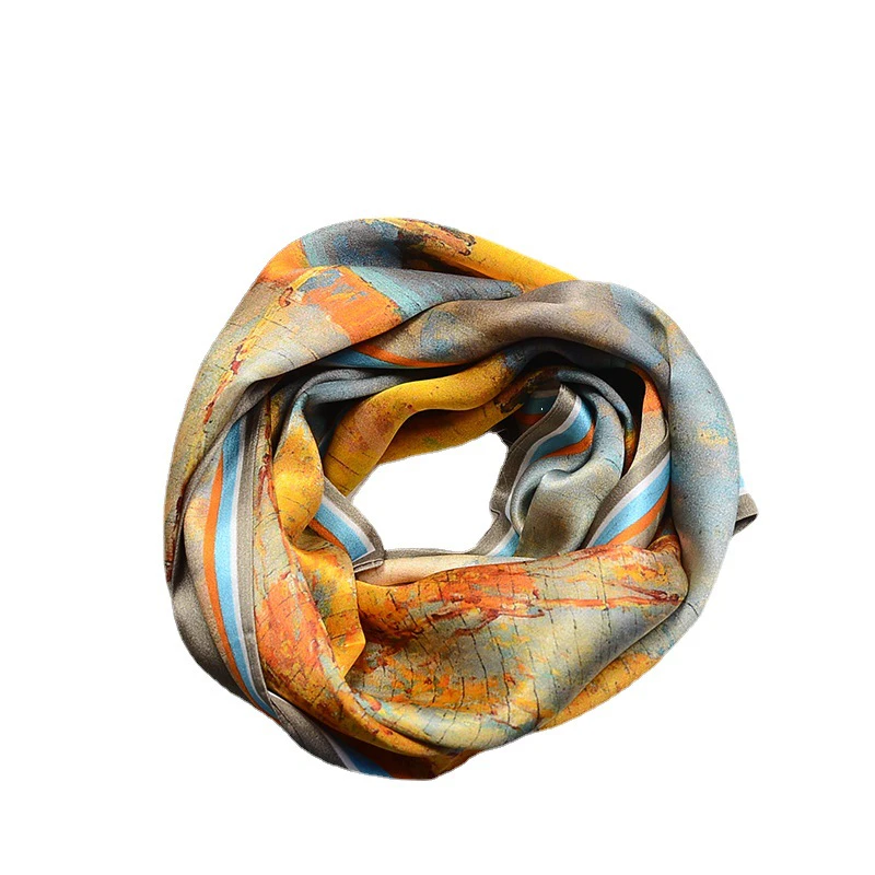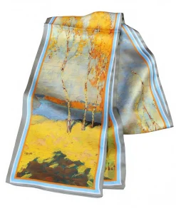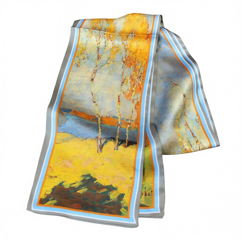 100% Mulberry Silk Scarf Versatile Double-sided Long Scarf Oil Painting Of Golden Autumn Design