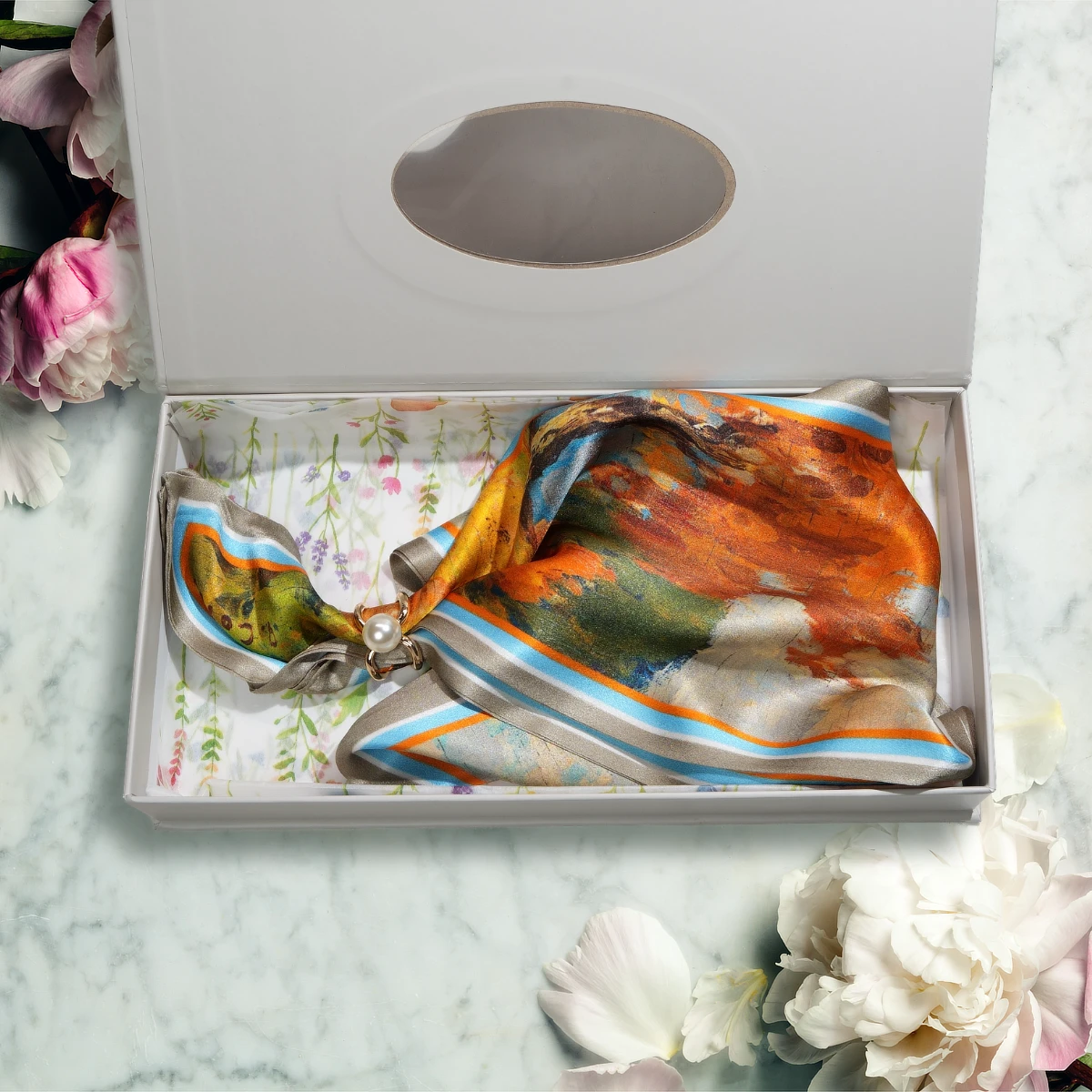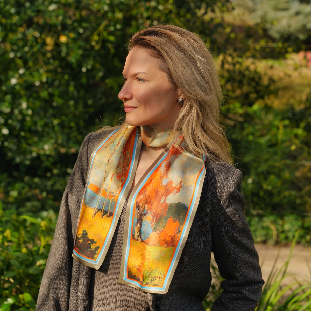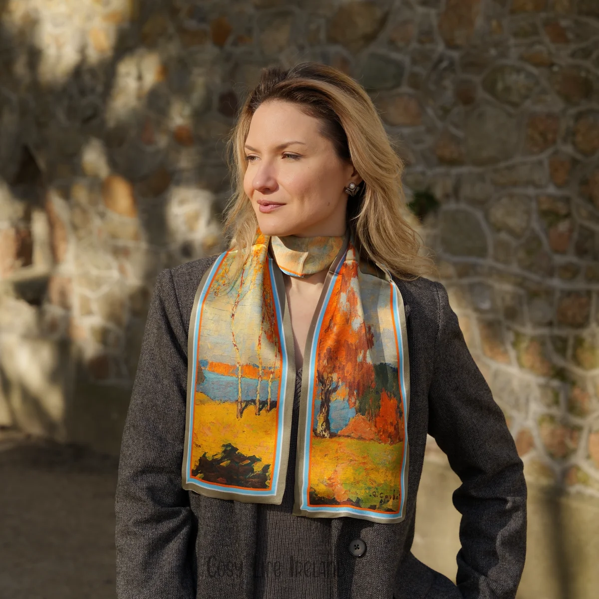 100% Mulberry Silk Scarf Versatile Double-sided Long Scarf Oil Painting Of Golden Autumn Design