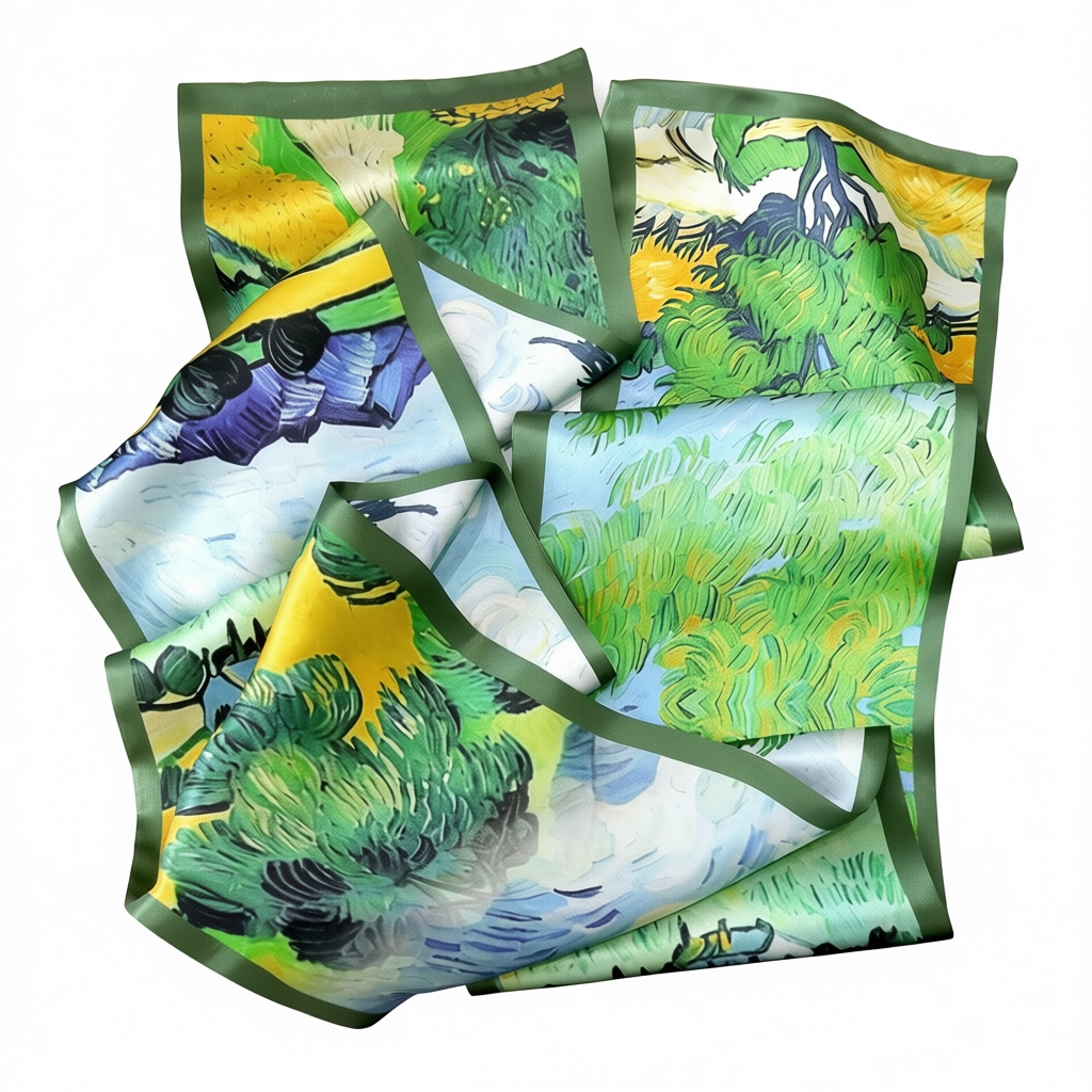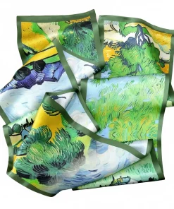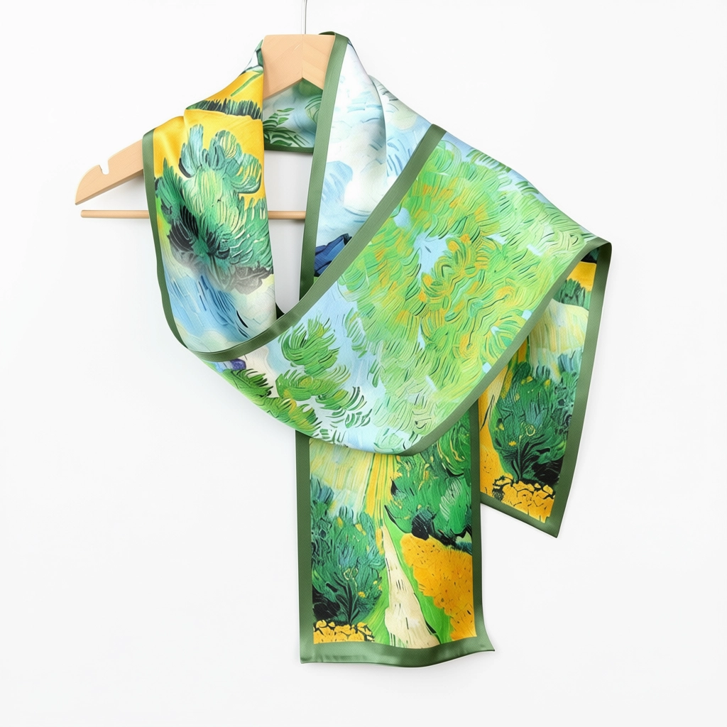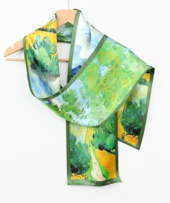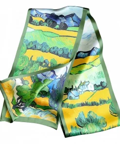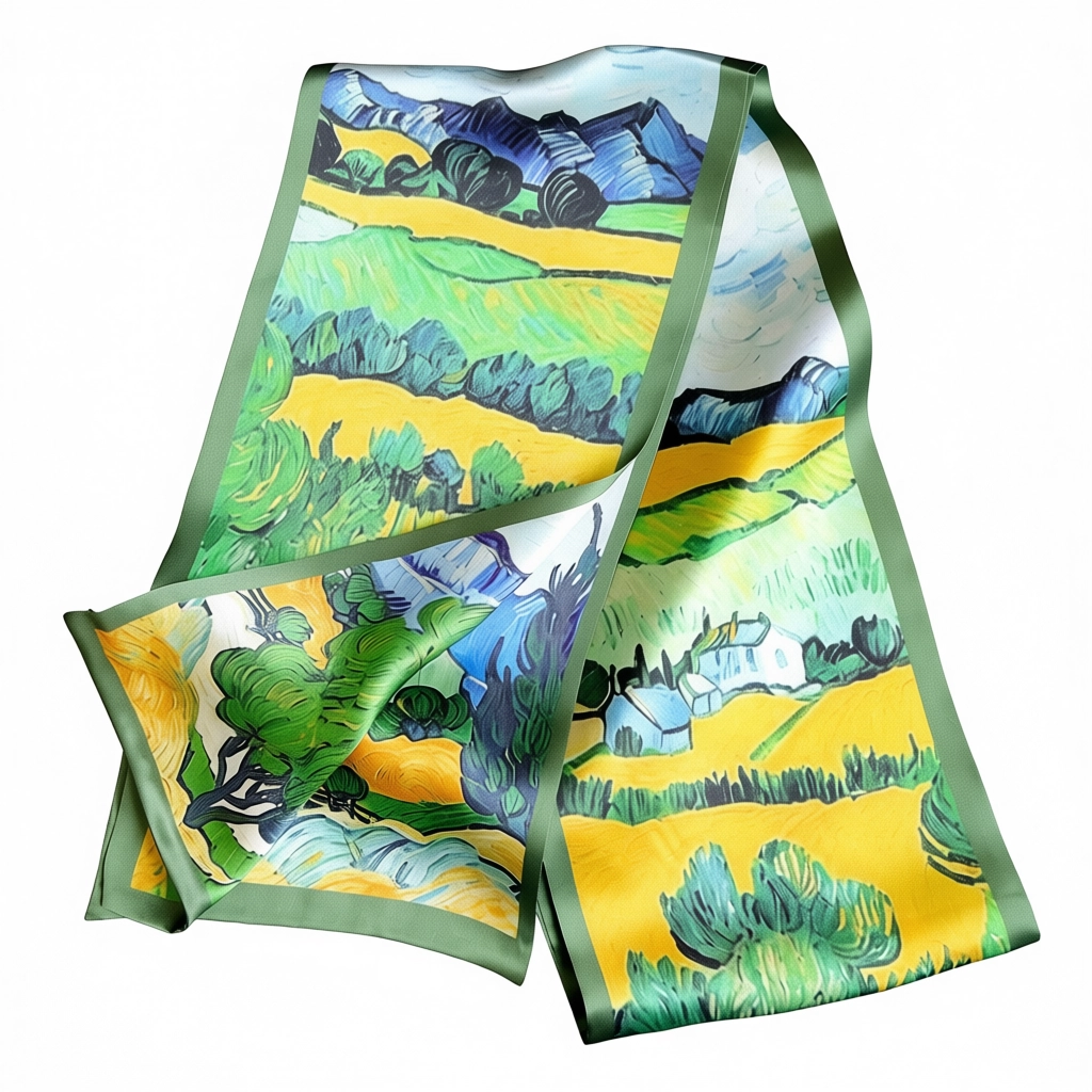 100% Mulberry Silk Scarf Versatile Double-sided Long Scarf Oil Painting of Irish Landscape Design