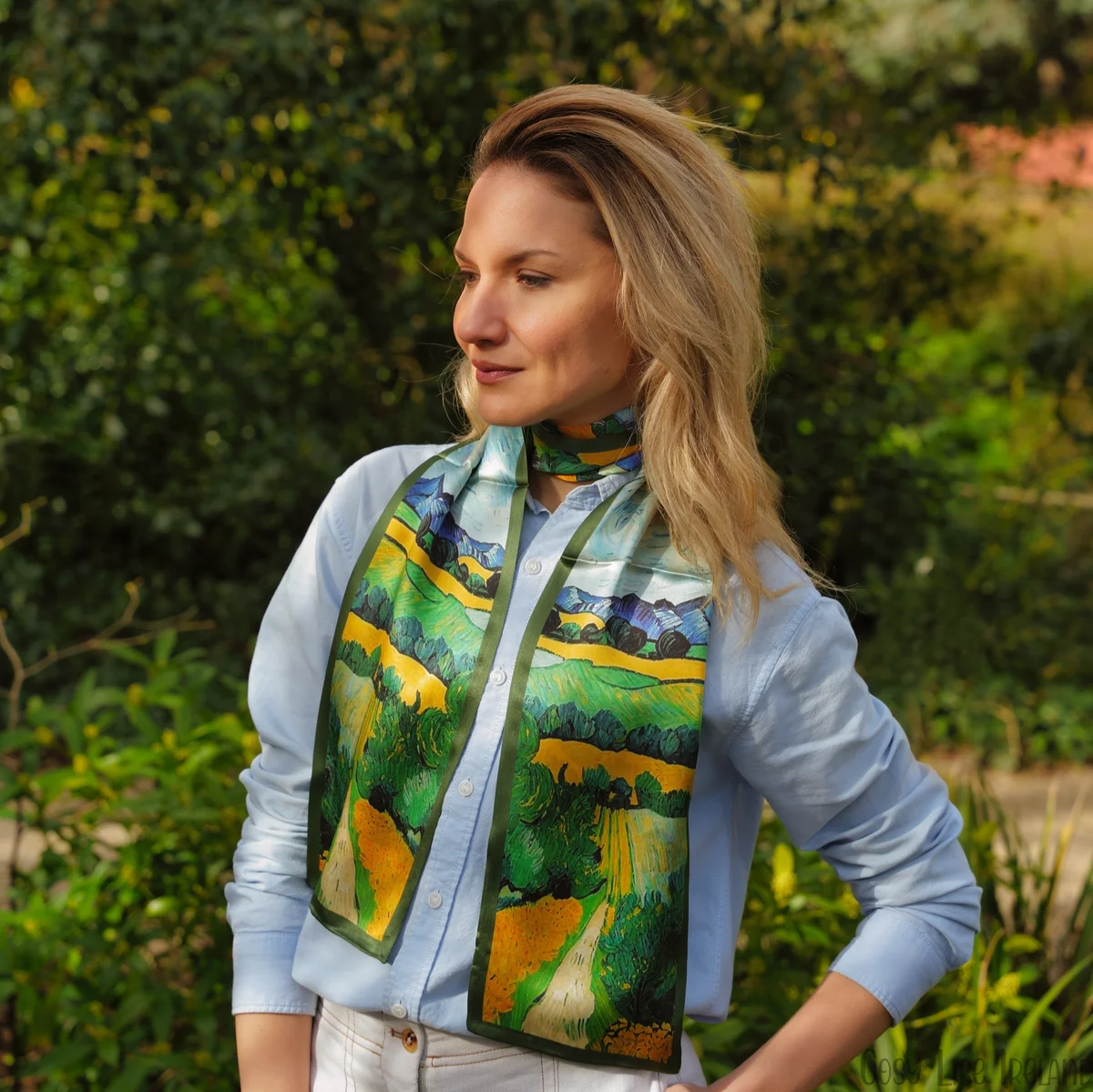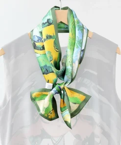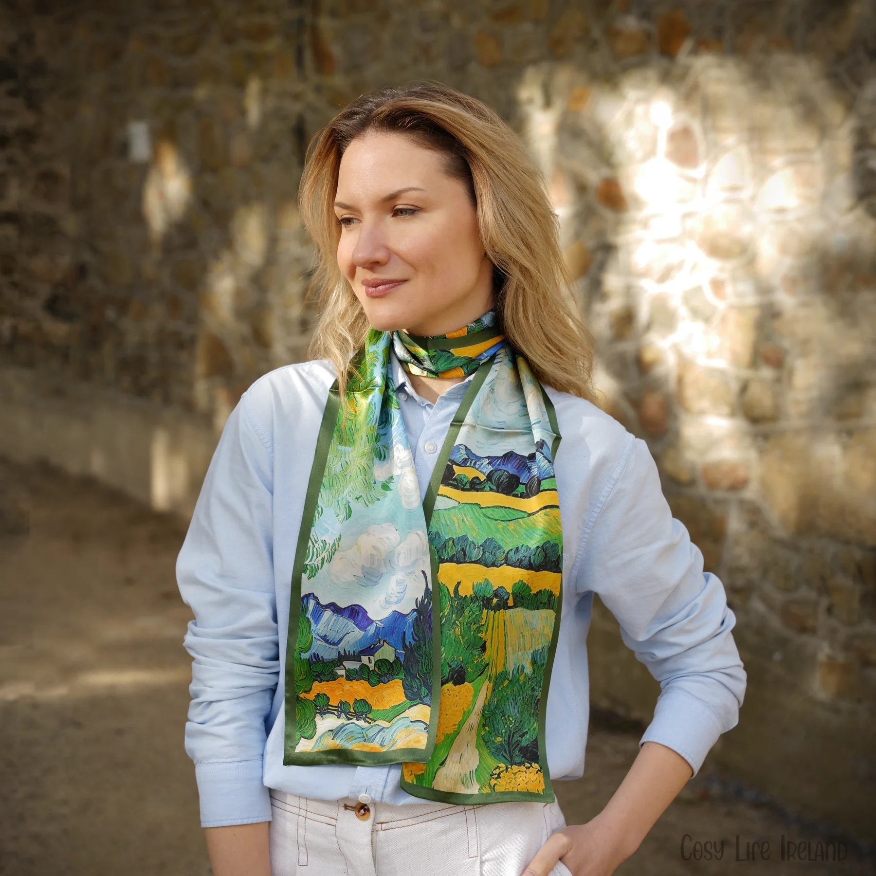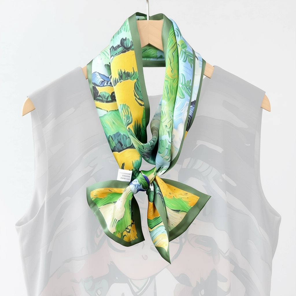 100% Mulberry Silk Scarf Versatile Double-sided Long Scarf Oil Painting of Irish Landscape Design