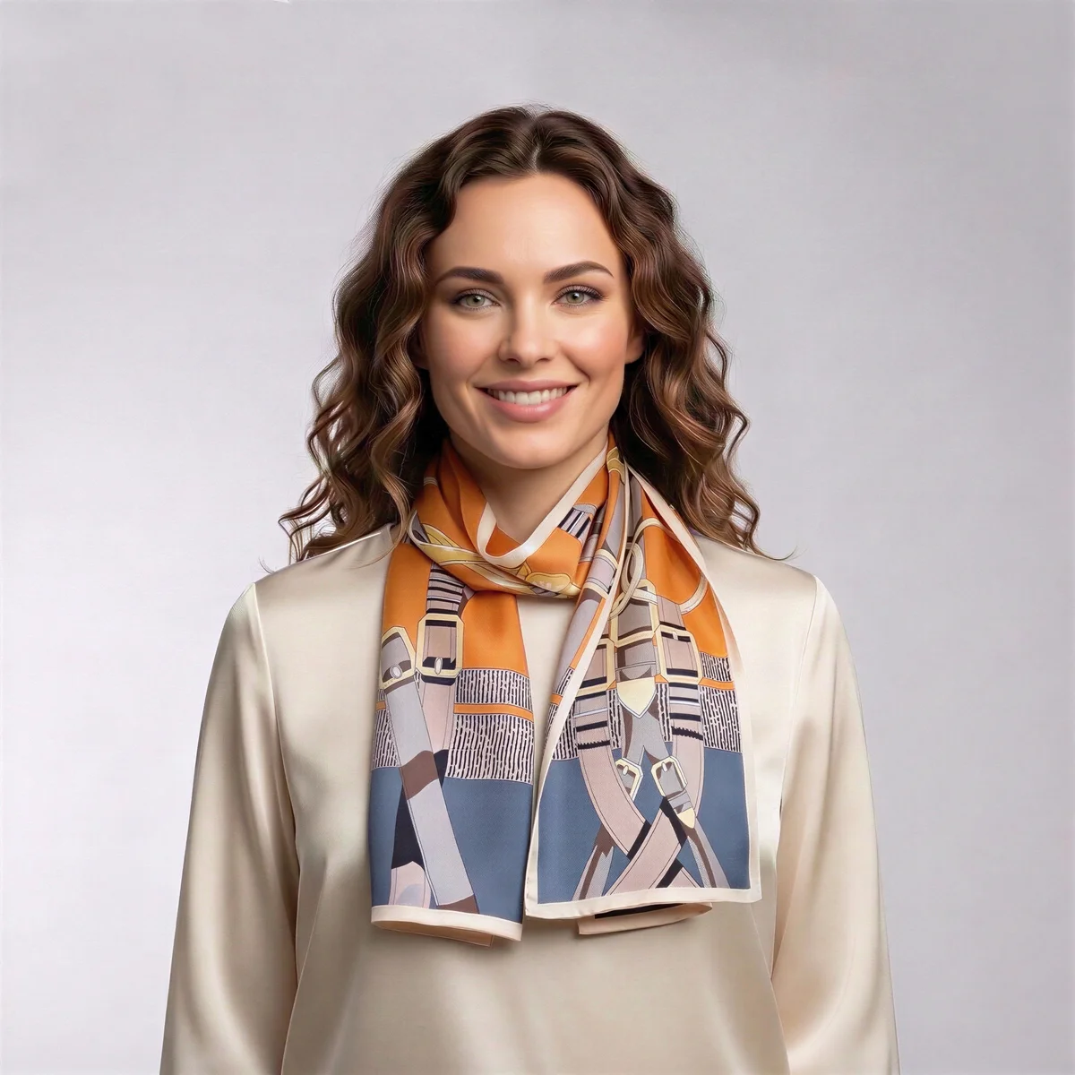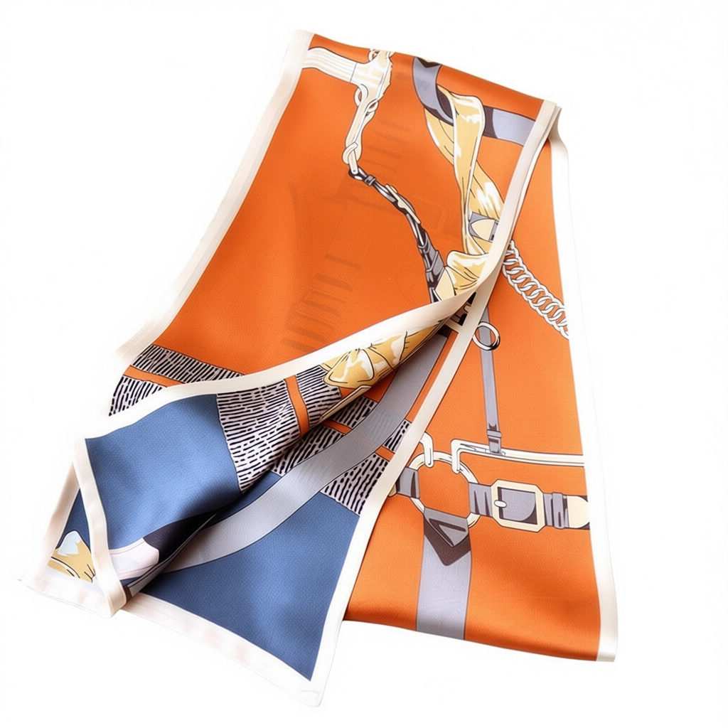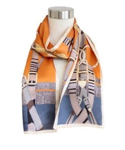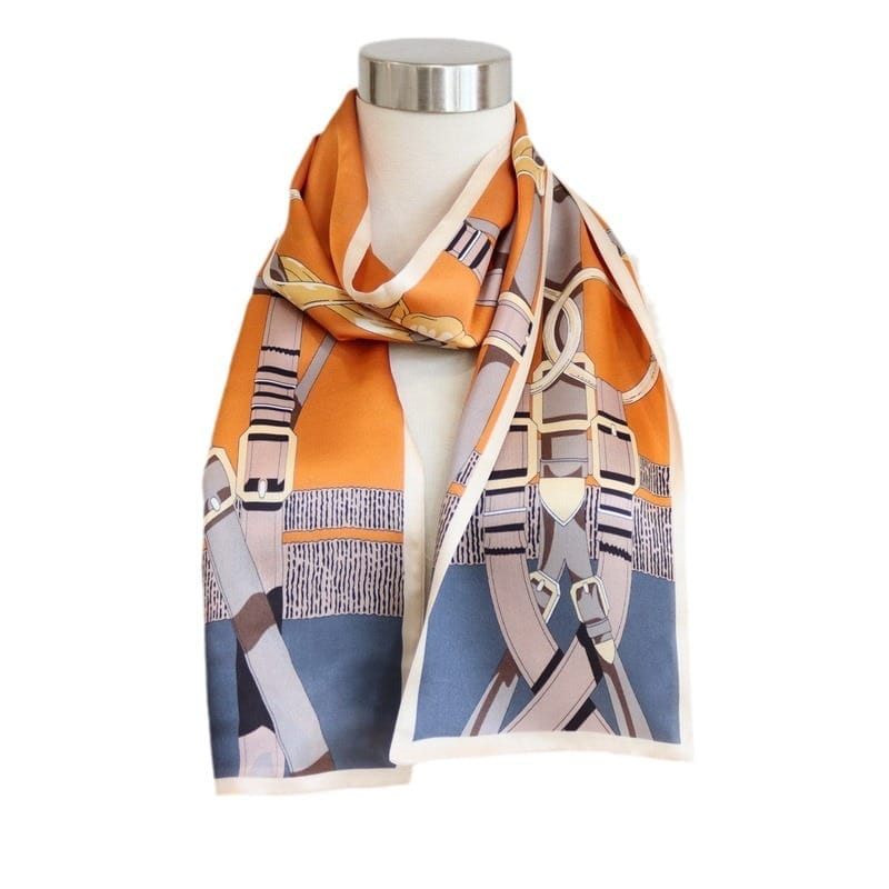 This luxurious long silk scarf is crafted from 100% natural Mulberry silk, renowned for its luminous sheen and smooth, soft texture. The design is double-layered and printed on both sides, bringing a touch of elegance to any outfit. Its luxurious softness makes it an ideal fabric for those with sensitive skin or who prefer natural fibres. The scarf is certified to OEKO‑TEX® Standard 100.