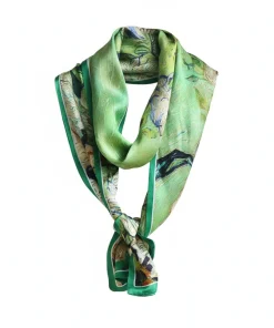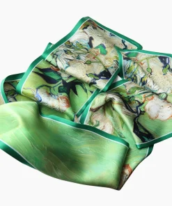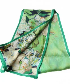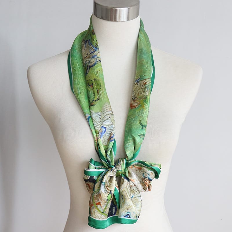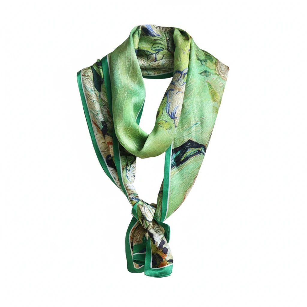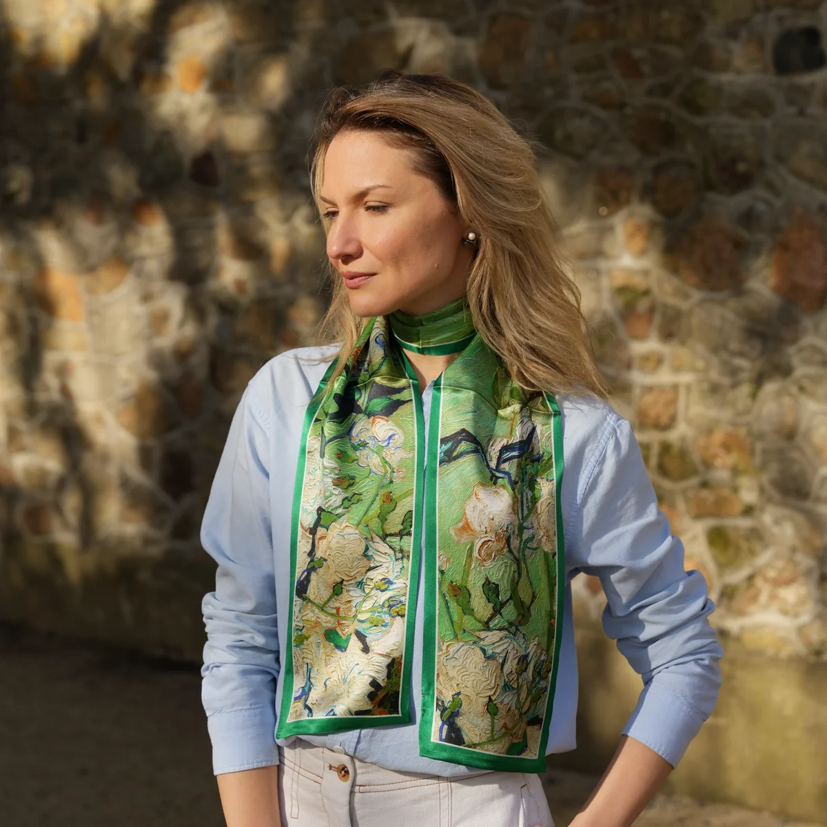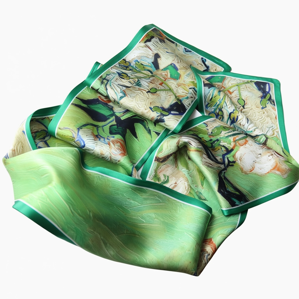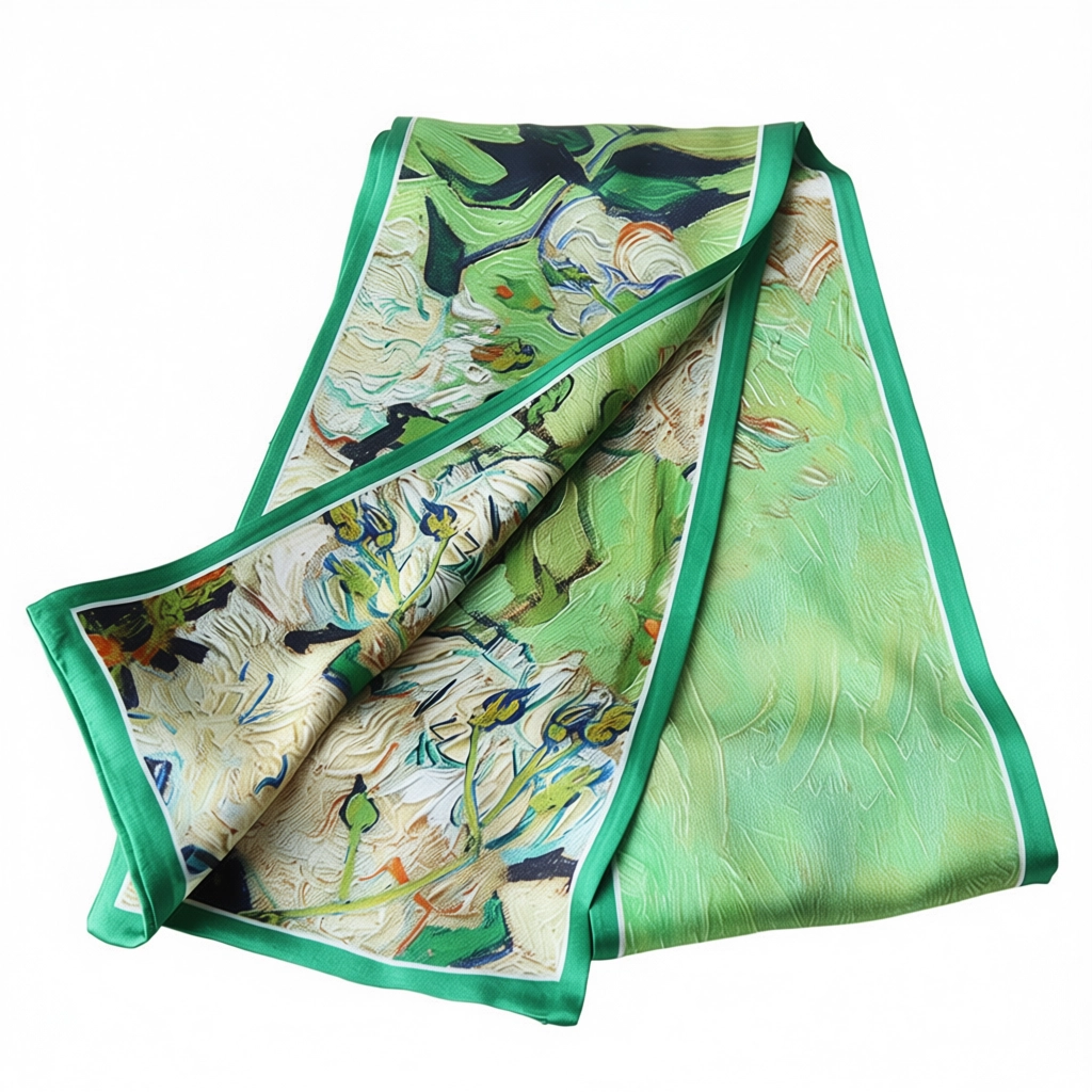100% Mulberry Silk Scarf Versatile Double-sided Long Scarf Rose Design Green