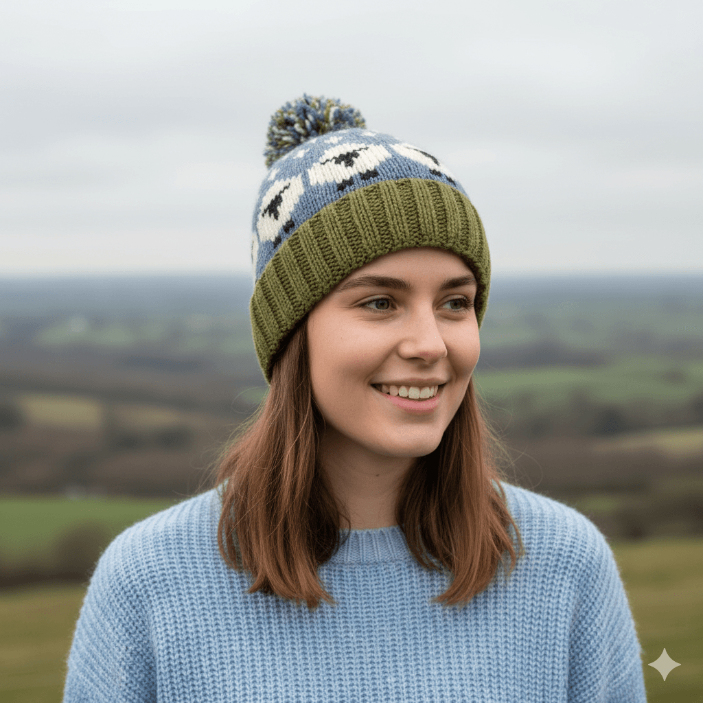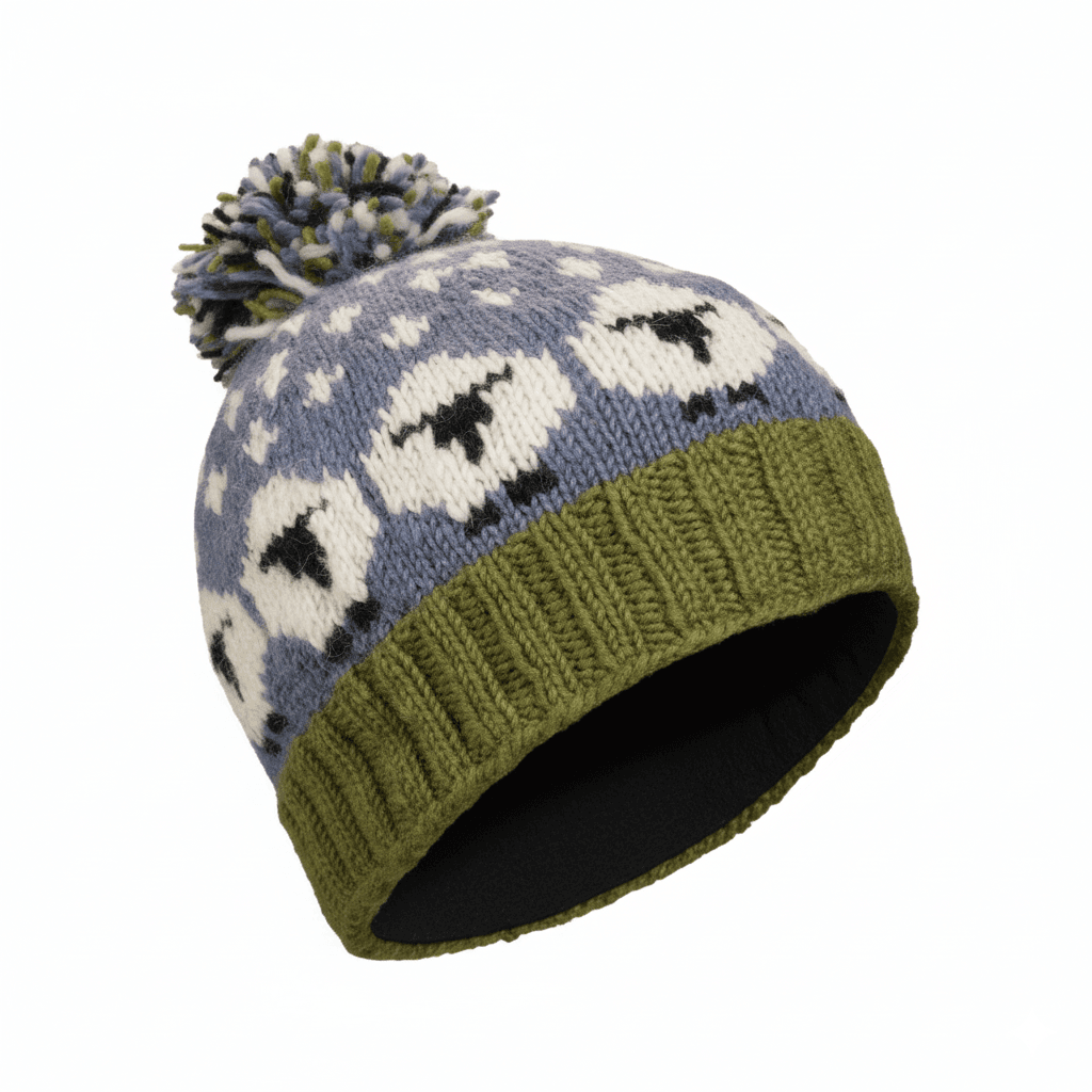 Stay warm and stylish with our Pure Wool Bobble Beanie this winter, featuring cute sheep design, hand-knitted by skilled artisan women using traditional techniques. The naturally breathable wool insulates and regulates body temperature more effectively than any synthetic material. Each hand-knitted hat reflects exceptional craftsmanship and a unique artisanal charm, making it an ideal Irish gift or to treat yourself.