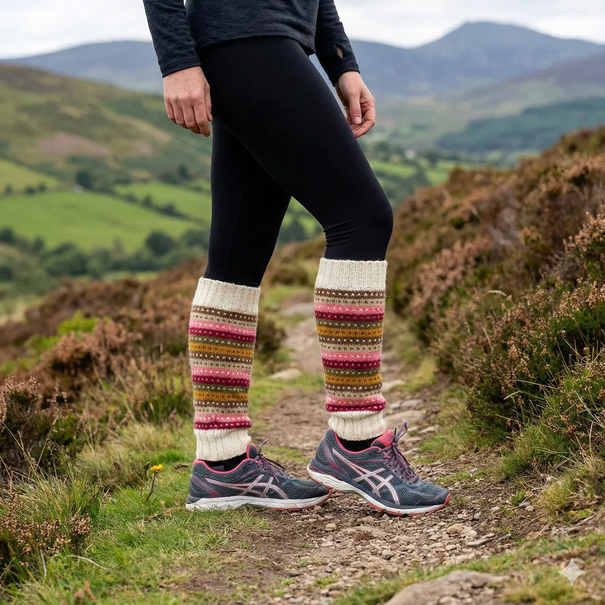 Stay warm and stylish with these pure wool leg warmers, hand-knitted by skilled artisan women using traditional techniques. It is ideal for keeping the leg muscles warm, preventing muscle cramps, and improving circulation. Perfect for outdoors or around the home, this versatile accessory provides warmth during walks, sports, or dancing. These hand-knitted leg warmers reflects exceptional craftsmanship and a unique artisanal charm, making it an ideal Irish gift or to treat yourself.