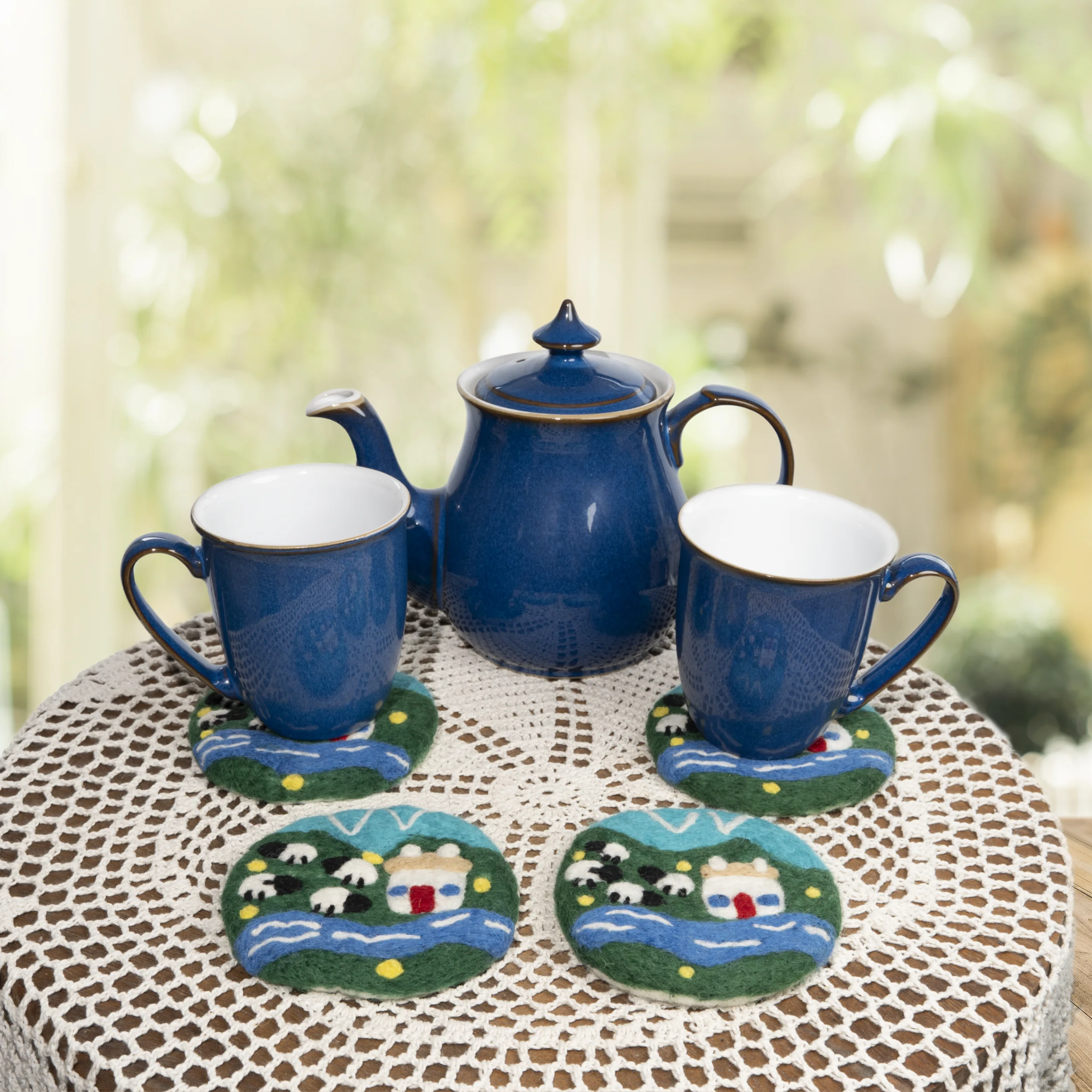 Bring warmth, colour, and charm to your home with our handmade needle-felted wool coasters. Each set is lovingly crafted by skilled artisans using traditional felting techniques, where natural wool fibres are carefully pressed and interlocked with felting needles to create miniature works of art.