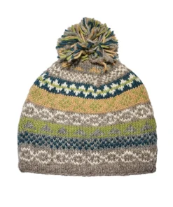 Stay warm and stylish with our Pure Wool Bobble Beanie Fair Isle Green design, hand-knitted by skilled artisan women using traditional techniques. The naturally breathable wool insulates and regulates body temperature more effectively than any synthetic material. Each hand-knitted hat reflects exceptional craftsmanship and a unique artisanal charm, making it an ideal Irish gift or to treat yourself.