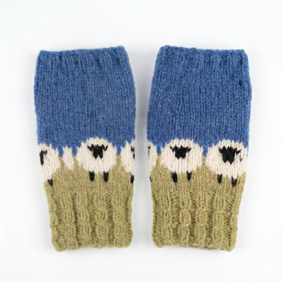 Stay warm and stylish with these pure wool fingerless hand warmers in Olive Green with a sheep pattern. The naturally breathable wool insulates your hands more effectively than any synthetic material. These hand-knitted fingerless gloves reflects exceptional craftsmanship and a unique artisanal charm, making it a perfect Irish gift or to treat yourself.