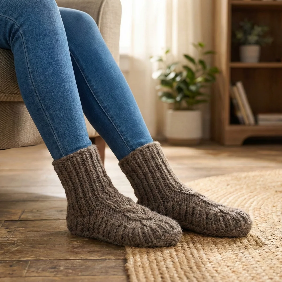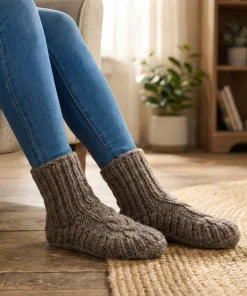 These pure wool Slipper Socks are hand-knitted by skilled artisan women using traditional techniques. Crafted from pure new wool, they provide the ultimate warmth and softness for your feet on chilly days.