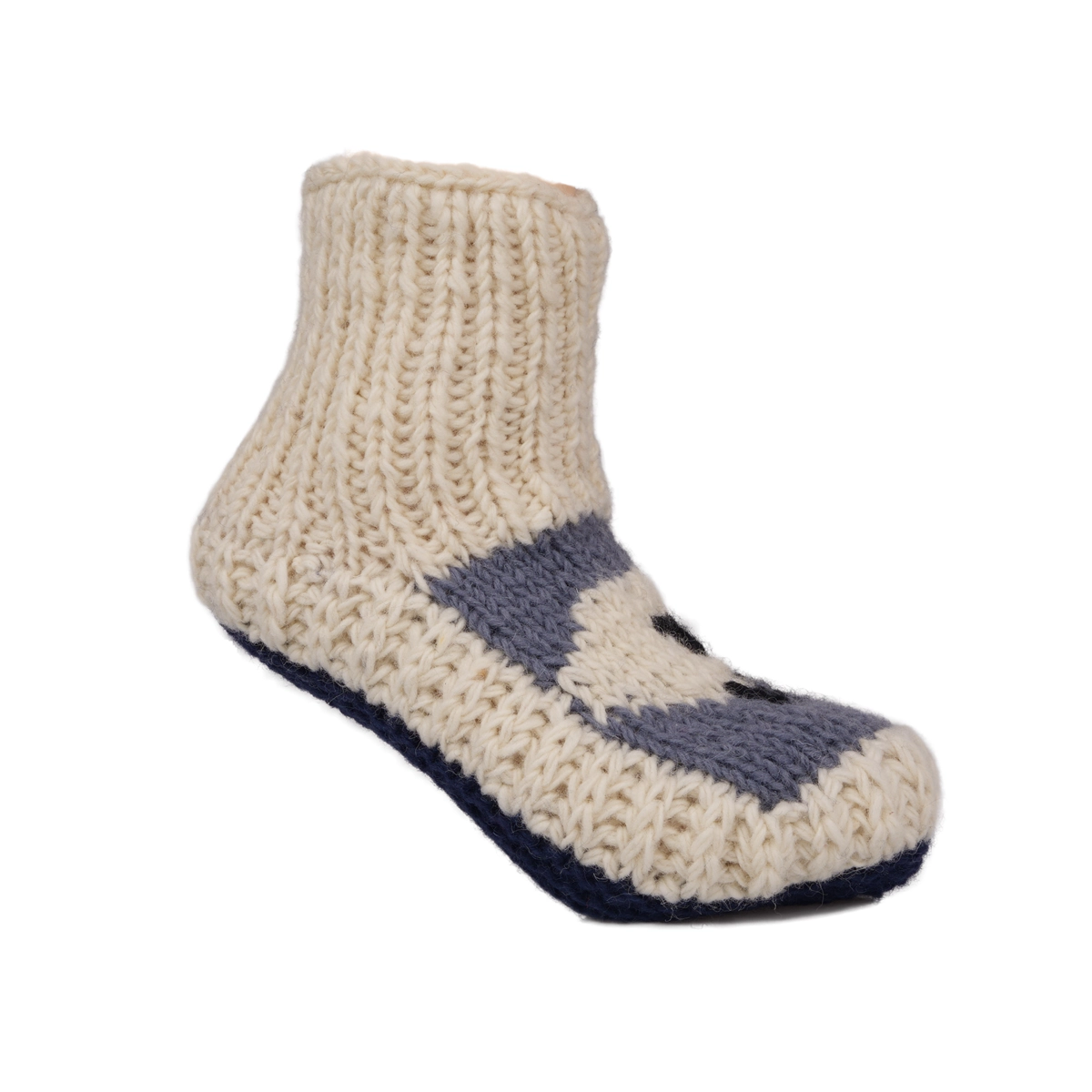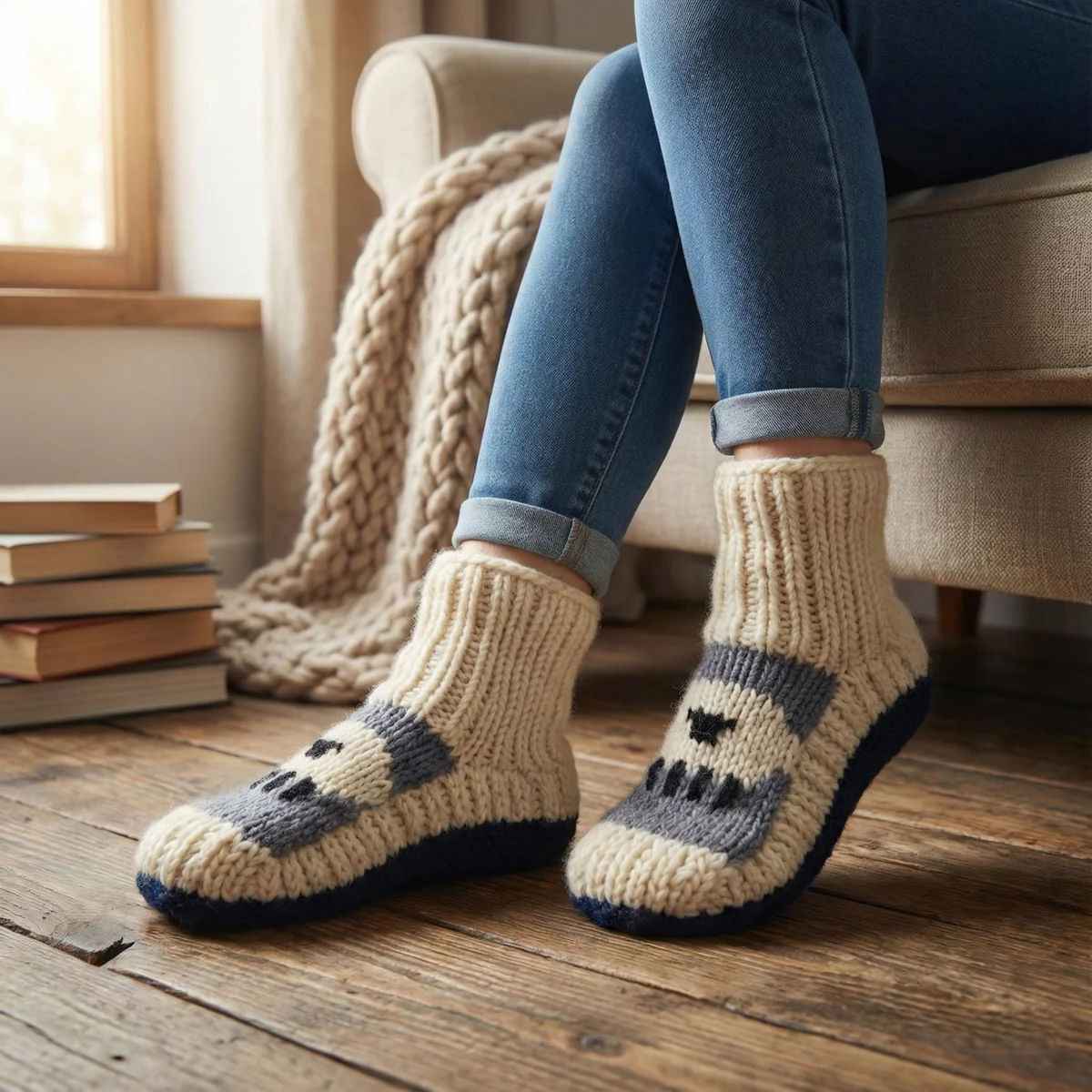 These pure wool Slipper Socks are hand-knitted by skilled artisan women using traditional techniques. Crafted from pure new wool, they provide the ultimate warmth and softness for your feet on chilly days.