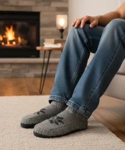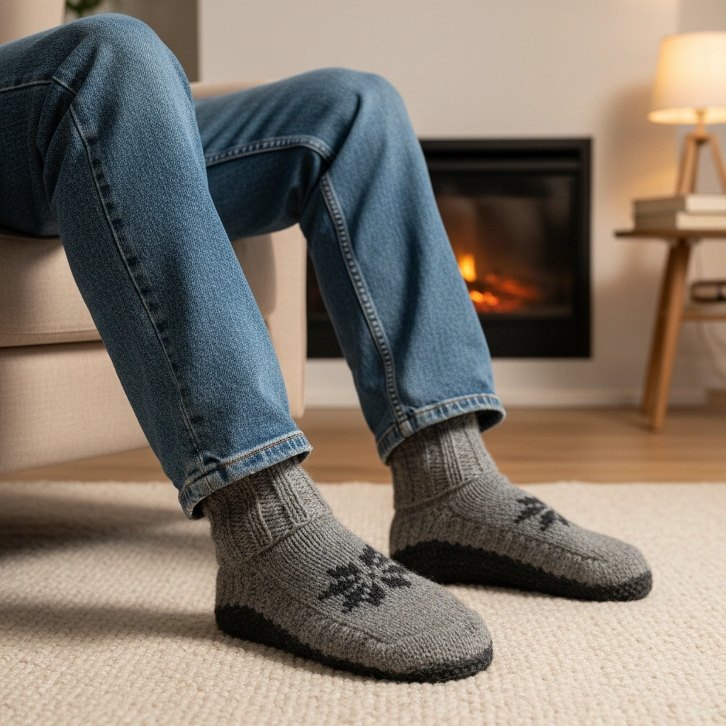 These pure wool men’s slippers socks are hand-knitted by skilled artisan women using traditional techniques, providing perfect insulation from those chilly days